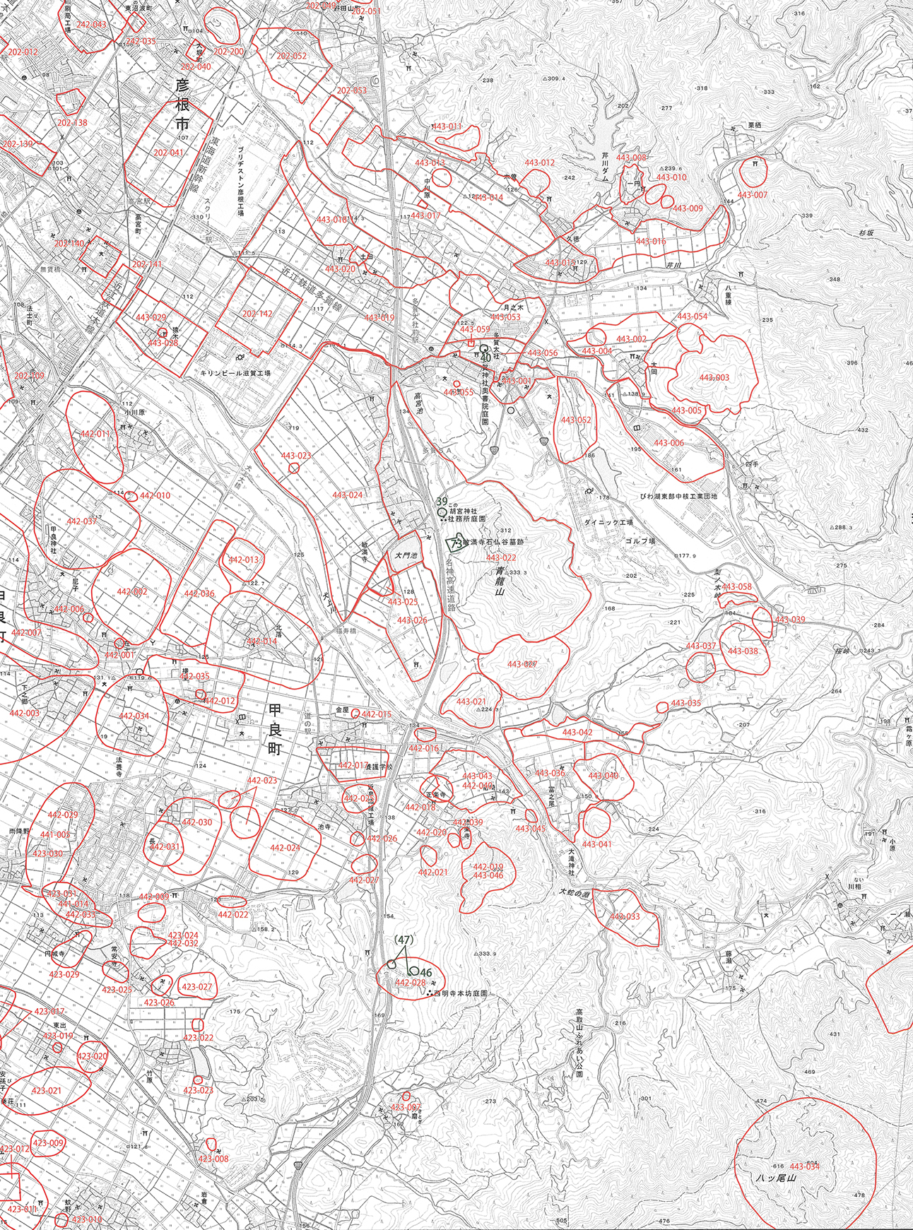 下記に掲載しています『令和3年度 滋賀県遺跡地図』を参考にしていただくことも可能ですが、最新のものではありませんので、御留意ください。なお、同地図は今後の調査によって改訂することがありますので、御注意ください。